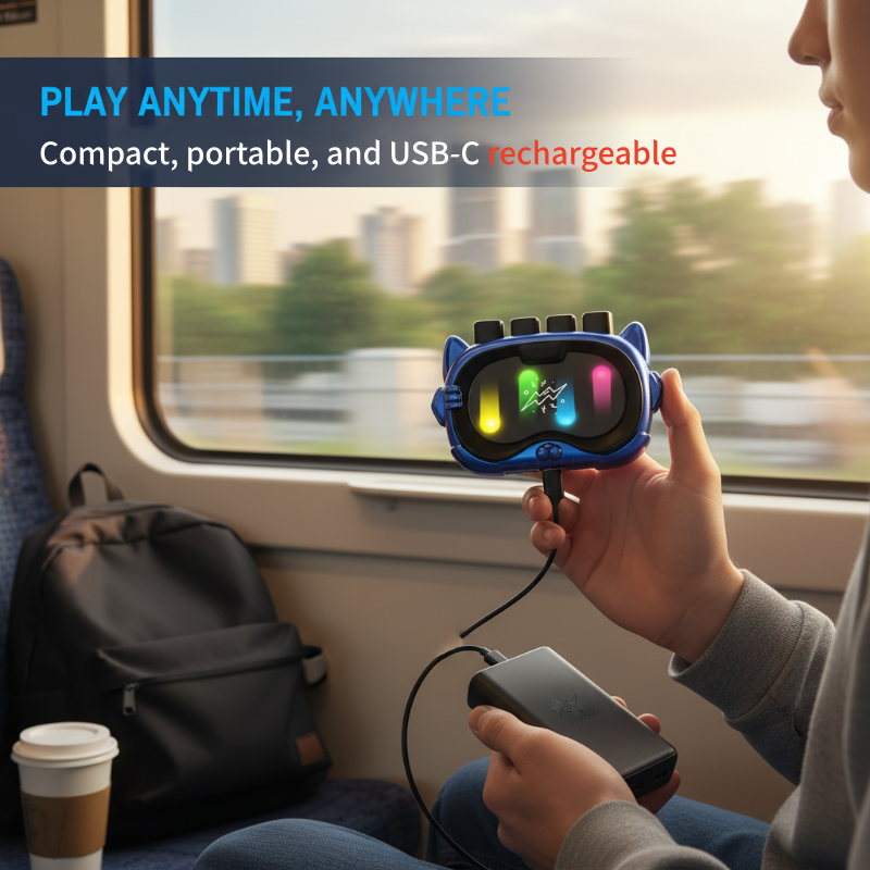 PRZENOŚNY I ŁADOWALNY — Kompaktowa, ręczna konstrukcja i nowoczesne ładowanie przez złącze USB-C sprawiają, że możesz zabrać rytmiczną zabawę wszędzie. Idealny do rozrywki w podróży, zapewniający szybką i angażującą przerwę dla umysłu, kiedy tylko jest to potrzebne.