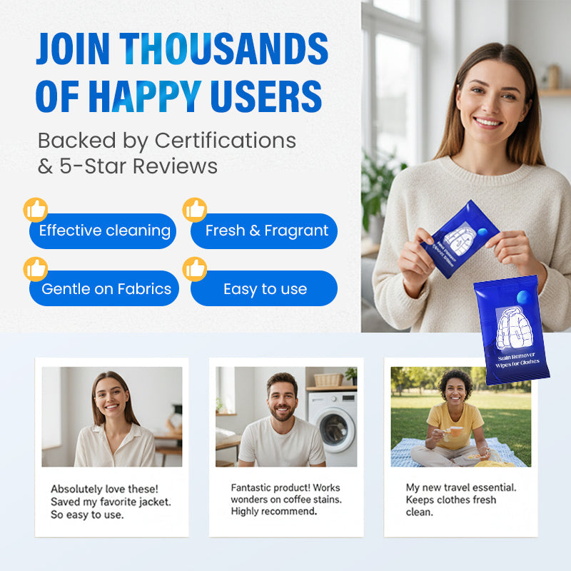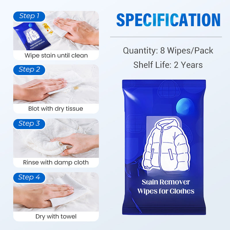 Zestaw zawiera: 1* chusteczki do usuwania plam z ubrań